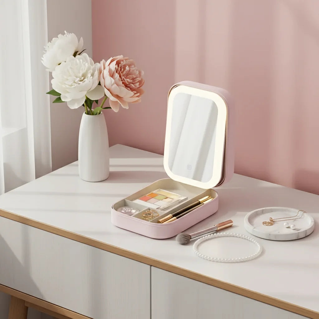 It's the perfect blend of style, convenience, and functionality. With its LED mirror and organized interior, it transforms any space into your personal glam station, ensuring you're always ready for your close-up.